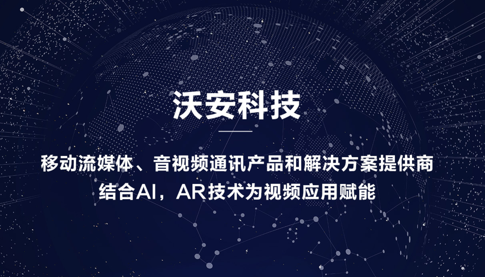 沃安科技致力成為最優(yōu)秀的移動流媒體、音視頻通訊產(chǎn)品和解決方案提供商,并結(jié)合智能識別AI,增強(qiáng)現(xiàn)實(shí)AR/虛擬現(xiàn)實(shí)VR技術(shù)為應(yīng)用賦能,面向企業(yè)級、政府等客戶提供先進(jìn)、智能、易用的產(chǎn)品和解決方案,以及完備的客戶服務(wù)保障。
